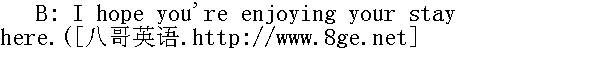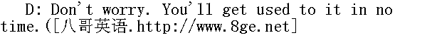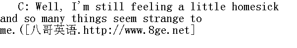 我希望你在这里过得愉快.) C: If it weren't for the climate, I'd like it very much here.( 要不是因为气候的话,我会很喜欢这儿的.) B: It always take time to get used to a new place.( 初来乍到,总要过些时候才会习惯的.)