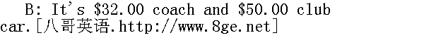 什么时候到那里? B: It's scheduled to arrive at 11:50. 按照列车时刻表是11点50分到。 A: How much is it? 多少钱? B: It's $30.00 one way or $55.00 round trip. 单程票价30元,来回票价55元。