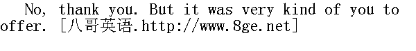 不用了,谢谢。承蒙您好意提出。 I can manage. But thank you, anyway. 我自己行了,但还是要谢谢您。