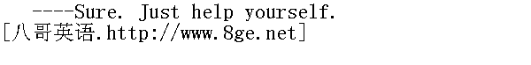 我把灯关了,好吗? ----I'd rather you didn't. 我倒希望您不要关。 Could you spare me some matches? 您能让给我几根火柴吗? ----Certainly. Here you are. 当然罗。给您。 May I borrow some books? 我可以借几本书吗?