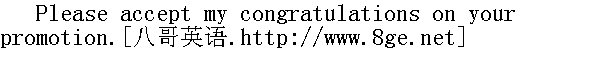 请接受我对您提升的祝贺。 I hear that you have won. Congratulations. 听说你们赢了,祝贺你们。 Let me congratulate you on your success. 祝贺您的成功。 ----Thank you. 谢谢。 Festival Greetings and Replies 节日祝愿和回答