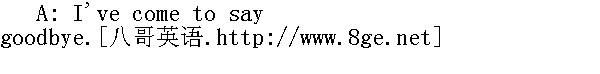 我是来告别的。 B: When are you off? 你什么时候动身? A: I'm flying home on Sunday afternoon. 我星期四下午乘飞机回家。 B: Well, goodbye. See you soon. 那么,再见。后会有期。 A: Please don't forget to say goodbye to the rest of the family for me. 请别忘了代我向你的家人告别。