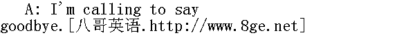 我大电话向你告别来了。 B: When do you leave? 你何时起程? A: I'm catching the 11:00 train. 我准备赶11点火车。 B: Take care of yourself and don't forget to keep in touch. 多多保重。别忘了保持联系。 A: Goodbye. Thanks again for everything. 再见了,再次感谢你所做的一切。