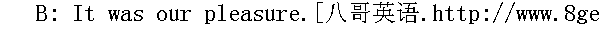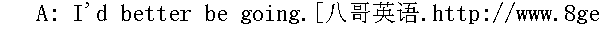 这是我们的荣幸。 A: I think it's about time we got going. 我想差不多是该告辞的时候了。 B: What? Already? Won't you have more coffee? 怎么,已经要走了?要不要再喝点咖啡? A: I'd love to, but I have to get up early tomorrow. 我是很想再喝一点,但我明天得起早。 B: Oh! I'm sorry. I wish you could stay. 哦,真遗憾,要是你能多呆一会儿该多好。