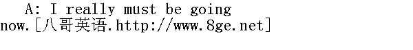 现在我真的该告辞了。 B: But you just got here. Can't you stay a little longer? 不过你刚来呀。不能再呆一会了吗? A: That's very nice of you, but I really can't. 谢谢你的好意,但是我实在不能再呆了。 B: Well, it's too bad that you have to go. 哦,真遗憾,你一定要走。 A: Thanks very much. It was a great party! 非常感谢。这次聚会好极了。