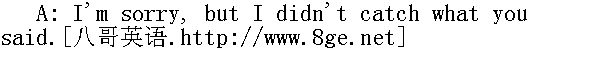 对不起,我没有听明白你的话。 B: I said, "Do you want me to help you?" 我是说:"你要我帮忙吗?" A: If you're sure you're not in a hurry, I can use a little help. 如果你真的不忙的话,我可能要你帮个小忙。 B: Would you like me to get you a cab? 要我替你叫出租汽车吗? A: I beg your pardon? 对不起,请再说一遍。