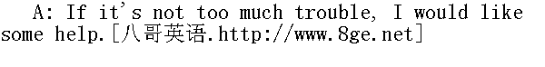 如果你不嫌麻烦的话,我想请你帮个忙。 B: It's no trouble at all. I'll carry this suitcase for you. 一点也不麻烦,我来替你提这只箱子。 A: Excuse me? I didn't hear what you said. 对不起,我没有听清你说的话。 B: I asked you if you wanted some help. 我是问你是否需要帮忙。 A: If you wouldn't mind, I could use a hand. 如果你不介意的话,我可能要你帮个忙。