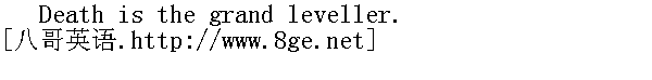死亡面前,不分贵贱。 Death meets us everywhere. 人生到处皆可死;死亡和我们到处相遇。 Death frees us from ills. 死亡使我们解脱不幸。 We shall lie all alike in our graves. 一朝进坟场,大家都一样。 In the grave the rich and poor lie equal. 一朝入暮穴,贫富皆一律。