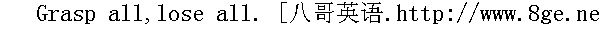 损失使人更谨慎。 Who loseth liberty loseth all. 失去自由即失去一切。 Either win the horse or lose the saddle. 不是全赢,就是全输;孤注一掷。 All is not lost that is in danger. 在危险中的东西未必全会损失。 Do not run too fast after gain. 不要见利便狂追。
