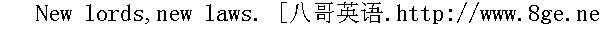 新君立新法。 Laws catch flies and let hornets go free. 法网只捕蝇,黄蜂由它去。 Where drums beat,laws are silent. 战鼓一响,法律无声。 An upright judge has more regard to justice than to men. 法官能公正,重法不重人。 That trial is not fair where affection is the judge. 法官动感情,审判难公正。