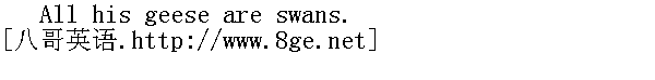 他喜欢夸大其词;敝帚自珍。 All your swans are geese. 你的美好希望(或诺言),全部成了泡影。 Each bird likes to hear himself sing. 每一只鸟都爱听自己歌唱。 The bird loves her nest. 鸟爱自己的窝。 Birds of a feather flock together. 物以类聚,人以群分。