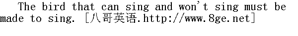 生来能唱的鸟,不愿唱也得叫它唱。 The fowler's pipe sounds sweet until the bird is caught. 捕禽人笛声悠扬,直吹得鸟儿落网。 He that will take the bird must not scare it. 捕鸟休惊鸟。 The noisy fowler catches no bird. 捕禽人大肆声张,鸟儿就不会落网。 Old birds are not caught with new nests. 新网难捕老鸟。
