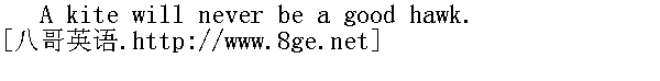 鸢永不会变成隼。 Empty hands no hawk allure. 空手不能诱鹰来。 The crow thinks his own bird fairest. 乌鸦总以为自己的雏鸟最美。 A crow is never the whiter for washing herself often. 乌鸦不管怎样经常洗澡,也不会变白。 Wheresoever the carcase is,there will the ravens be gathered together. 哪里有死尸,乌鸦就成群。