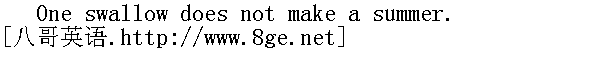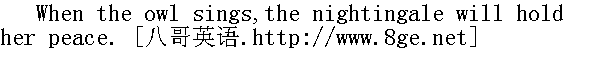 一燕不能成夏天(不可仅凭一种现象而遽作判断)。 The snail slides up the tower at last though the swallow mounteth it sooner. 燕子一飞就上塔,蜗牛悄悄爬,最后也上塔。 The cuckoo comes in April,and stays the month of May;sings a song at Midsummer,and then goes away. 布谷鸟,四月来,五月一直在,仲夏唱支歌,然后就离开。 If the sky falls,we shall catch larks. 天垮正好抓云雀;不要杞人忧天。 An owl is the king of the night. 猫头鹰是黑夜之王。