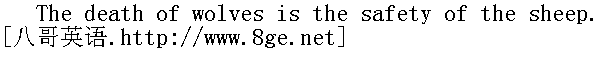 群狼一死众羊安。 While you trust to the dog,the wolf slips into the sheepfold. 当你认为狗可信,狼已偷偷把羊圈进。 When the wolf grows old, the crows ride him. 狼老被鸦欺。 Man is to man either a god or a wolf. 人与人交往,不是上帝就是狼。 A growing youth has a wolf in his belly. 青年成长时,食量大如狼。