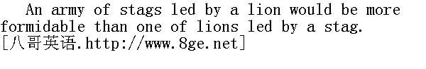 一只狮子率领的一群鹿,比一只鹿率领的一头狮子更难对付。 A bad custom is like a good cake, better broden than kept. 坏习惯象饼子,碎了比保存起来好。 A bald head is soon shaven. 光脑袋,剃得快。 A blind man will not thank you for a looking-glass. 瞎子不谢赠镜人。 A borrowed cloak does not keep one warm. 借来的大氅不暖身。