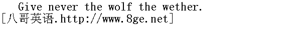 莫把阉羊送给狼。 Who keeps company with the wolf will learn to howl. 与狼相结交,就会学狼嚎。 The lone sheep is in danger of the wolf. 孤羊逢狼,必然遭殃。 It is madness for a sheep to treat of peace with a wolf. 跟狼讲和平,此羊必癫狂。 By little and little the wolf eateth the sheep. 狼吃羊,一只一只进肚肠。