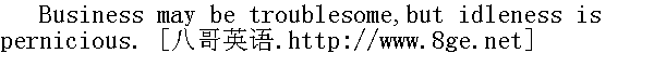 事业虽扰人,懒惰害更大。 He that thinks his business below him will always be above his business. 自命大才小用,往往眼高手低。 Do business,but be not a slave to it. 要做事,但不要做事务的奴隶。 Everybody's business is nobody's business. 众人的事就是无人过问的事。 Work makes the workman. 勤工出巧匠。