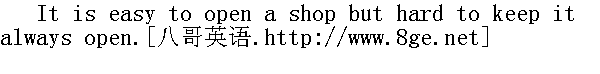 创业容易守业难。 It is hard to please all. 众口难调。 It is never too old to learn. 活到老,学到老。 It is no use crying over spilt milk. 覆水难收。 It is the first step that costs troublesome. 万事开头难。