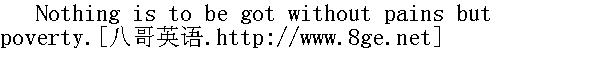 世上唯有贫穷可以不劳而获。 Not to advance is to go back. 不进则退。 Not to know what happened before one was born is always to be a child. 不懂世故,幼稚可笑。 No way is impossible to courage. 勇者无惧。 Obedience is the first duty of a soldier. 军人以服从命令为天职。