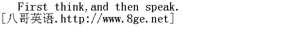 动口先动脑。 A word spoken is past recalling(The words once spoken can never be recalled). 一言既出,驷马难追。 While the word is in your mouth,it is your own;when 'tis once spoken, 'tis another's. 话在嘴里,属于自己;话一出口,人家所有。 Speech is silver,silence is gold. 言语是银,沉默是金。 Few words are best. 寡言为贵。