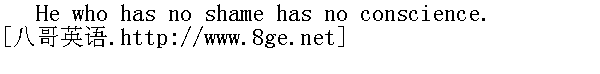 不知羞耻的人不知自疚。 An honest look covereth many faults. 一副诚实的外表掩盖着许多缺点。 Once a knave,ever a knave. 一次成无赖,永远是无赖。 A crafty knave needs no broker. 狡猾的无赖不需要有中间人。 The honest penny is better than the stolen dollar. 正当得到的一分钱胜于偷来的一元钱。