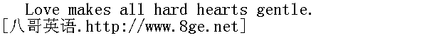 坚固的爱情不会顷刻忘怀。 The greatest hate springs from the greatest love. 最大的恨来自最大的爱。 No love is foul,nor prison fair. 没有肮脏的爱情,也没有美丽的监狱。 Labour is lihgt where love doth pay. 爱情付报酬,劳苦也轻松。 Love is the reward of love. 爱就是爱的报酬。