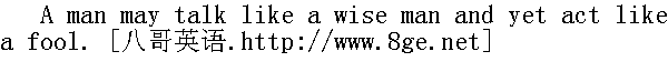 一个人可能说话如智者,而行为象愚人。 The more riches a fool hath,the greater fool he is. 愚人越富越蠢。 Never challenge a fool to do wrong. 不要怂恿愚人干错事。 It is better to please a fool than to anger him. 对愚人最好是使他高兴,而不是惹他发怒。 He is a fool who cannot be angry,but he is a wise man who will not. 不会发怒是蠢人,不愿发怒是聪明人。