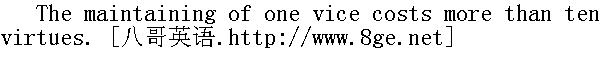 保持一桩恶事的代价超过于十件好事。 They that do nothing learn to do ill. 游手好闲,容易学坏。 A wicked man is his own hell. 坏人作恶,自造地狱。 Those who eat best and drink best often do worst. 吃得好,喝得好,坏事常常免不了。 He who has done ill once will do it again. 一次干坏事,便有第二次。