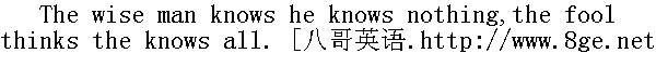 聪明人自认一无所知,愚笨人自负无所不晓。 Fools learn nothing from wise men;but wise men learn much from fools. 愚人不能从智者那里学到什么;而智者却能从愚人那里学到很多。 A fool always comes short of his reckoning. 愚人常短于心计。 A fool's heart dances on his lips. 愚人的心挂在唇边。 A fool always finds a greater fool than himself. 愚人总以为旁人比自己更傻。