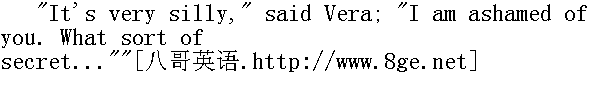 很愚蠢, "薇拉说道, "我替你们害臊, 这是什么秘密呢?......" "Every one has secrets. We don't interfere with you and Berg," said Natasha, getting warmer. " 每个人都有自己的秘密。我们不招惹你和贝格就是了。"娜塔莎急躁地说...... "I should think you didn't interfere," said Vera, "because there could be no harm in any conduct of mine. But I shall tell mamma how you behave with Boris." " 我认为, 你们不会触犯人, "薇拉说道, "因为我从来没有什么不轨的行为。看吧, 你怎样对待鲍里斯, 我准会告诉妈妈。" "Natalya Ilyinishna behaves very well to me," said Boris. "I have nothing to complain of," he said. " 娜塔莉娅?伊利尼什娜待我非常好, "鲍里斯说道, "我不会诉怨的。"他说道。 "Leave off, Boris, you're such a diplomatist" (the world diplomatist was much in use among the children in the special sense they attached to the word). "It's tiresome, really," said Natasha, in a mortified and shaking voice; "why does she set upon me?""You'll never understand it," she said, addressing Vera, "because you've never cared for any one; you've no heart; you're simply Madame de Genlis" (this nickname, considered most offensive, had been given to Vera by Nikolay), "and your greatest delight is in getting other people into trouble. You can flirt with Berg, as much as you like," she said quickly. " 鲍里斯, 请您不要管, 您是这么一个外交家(外交家这个词在儿童中间广为流传, 他们使这个词具有一种特殊意义), 真够乏味, "娜塔莎用委屈的颤栗的嗓音说道, "她干嘛跟着我, 纠缠得没完没了?这一点你永远也不会明白, "她把脸转向薇拉说道, "因为你从来没有爱过任何人;你简直没有心肠, 你只是个ma-damedeGenlis①(尼古拉给薇拉起的侮辱人的绰号), 你主要的乐趣就是给他人制造不愉快的事情。你去向贝格献媚吧, 你想怎样献媚就怎样献媚。"她急匆匆地说道。 "Well, I'm not likely to run after a young man before visitors...."" 是的, 我也许不会在客人们面前去追逐一个年轻人......" "Well, she has gained her object!" Nikolay put in; "she has said something nasty to every one, and upset everybody. Let's go into the nursery." " 得啦, 你达到目的了, "尼古拉插话了, "在大家面前说了许多讨厌的话, 真使大家扫兴了。我们到儿童室去吧。" All four rose, like a flock of scared birds, and went out of the room. 这四个人有如一群惊弓之鸟都站立起来, 从房里走出去了。 "You've said nasty things to me, and I said nothing to any one," said Vera. " 人家对我说了许多讨厌的话, 可我没有对谁说什么。"薇拉说道。