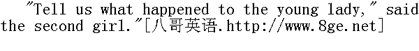 告诉我, 这个小姐出了什么事?"梅柳科娃的次女说。 "Well, it was like this," said the old maid. "The young lady went out; she took a cock, two knives and forks, and everything proper, and sat down. She sat a little while, and all of a sudden she hears some one coming-a sledge with bells driving up. She hears him coming. He walks in, precisely in the shape of a man, like an officer, and sat down beside her at the place laid for him."" 对, 是这么回事, 有个小姐已经到浴室去了。"老处女说, 她拿走一只公鸡、两套餐具, 她所做的正是理应做的事, 她在那里坐下来。坐了一会儿, 她只听见, 忽然间有辆车子开来......一辆雪橇驶近了, 铃铛和铃鼓发出叮叮当当的响声, 她听见有个人走来。那个人完全和人一样, 好像是一个军官, 走进来, 坐在她身旁, 拿起餐具用膳。" "Ah! ah!..." screamed Natasha, rolling her eyes with horror." 啊!啊!......"娜塔莎惊骇万状, 瞪起眼睛大声喊叫。 "But what did he do? Did he talk like a man?"" 它怎么样, 和我们人这样说话吗?" "Yes, like a man. Everything as it should be, and began to try and win her over, and she should have kept him in talk till the cock crew; but she got frightened,-simply took fright, and hid her face in her hands. And he caught her up. Luckily the maids ran in that minute..."" 对, 就像人一样, 什么都像人一样, 他于是开始、开始规劝她, 她本想应酬他, 一直谈到鸡鸣破晓, 可是她胆怯起来, 简直胆怯得用手蒙住眼睛。他把她托起来了。好在这时候有几个姑娘跑过来了......"