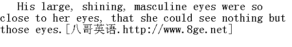 他那闪闪发亮的男人的大眼睛离她的眼睛太近了, 使她简直看不见什么, 她所看见的只是这一对眼睛。 "Natalie?" his voice whispered interrogatively, and her hands were squeezed till it hurt. "Natalie?"" 娜塔莎?!"他疑惑地低声说, 有个什么人把她的手握得很疼。"娜塔莎?!" "I don't understand; I have nothing to say," was the answer in her eyes." 我一点也不明白, 我没有什么可说的。"她的目光仿佛这样说。 Burning lips were pressed to her lips, and at the same instant she felt herself set free again, and caught the sound of Ellen's steps and rustling gown in the room again. Natasha looked round towards Ellen; then, red and trembling, she glanced at him with alarmed inquiry, and moved towards the door. 热乎乎的嘴唇紧紧地贴着她的嘴唇, 这时分她又觉得自己太放任了, 房间里可以听见海伦的步履声和连衣裙的窸窣的响声。娜塔莎回头望望海伦, 她满面通红, 战战兢兢, 现出恐惧的疑问的眼神向他瞥视一下, 往门口走去。 "One word, just one word, for God's sake," Anatole was saying. She stopped. She so wanted him to say that word, that would have explained to her what had happened and to which she could have found an answer. ①法语: 有一句话, 只有一句话, 看在上帝面上。 "Natalie, one word ... one ..." he kept repeating, plainly not knowing what to say, and he repeated it till Ellen reached them. "Nathalie, un mot, un seul."②他老是重说这句话, 显然他不知道该说什么好, 他说了一遍又一遍, 直至海伦走到他们跟前才住口。 ②法语: 娜塔莎, 有一句话, 一句话。