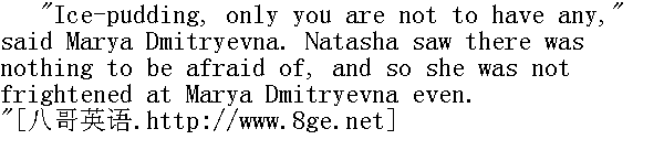 冰激凌, 只是人家不给你。"玛丽亚?德米特里耶夫娜说道。娜塔莎明白, 没有什么可害怕的, 因此她也不害怕玛丽亚?德米特里耶夫娜。 "Marya Dmitryevna! what sort of ice-pudding? I don't like ice cream." " 玛丽亚?德米特里耶夫娜, 什么样的冰激凌?我不爱吃奶油冰激凌。" "Carrot-ices." " 胡萝卜冰激凌。" "No, what sort, Marya Dmitryevna, what sort?" she almost shrieked. "I want to know." Marya Dmitryevna and the countess burst out laughing, and all the party followed their example. They all laughed, not at Marya Dmitryevna's answer, but at the irrepressible boldness and smartness of the little girl, who had the pluck and the wit to tackle Marya Dmitryevna in this fashion. " 不是的, 什么样的冰激凌?玛丽亚?德米特里耶夫娜, 什么样的冰激凌?"她几乎叫喊起来。"我想知道啊!"玛丽亚?德米特里耶夫娜和伯爵夫人都笑了起来, 客人们也都跟着笑起来。大家不是对玛丽亚?德米特里耶夫娜的回答觉得好笑, 而是对这个女孩百思不解的大胆和机智觉得好笑, 她居然有本事、有胆量这样对待玛丽亚?德米特里耶夫娜。 Natasha only desisted when she had been told it was to be pineapple ice. Before the ices, champagne was passed round. Again the band struck up, the count kissed the countess, and the guests getting up from the table congratulated the countess, and clinked glasses across the table with the count, the children, and one another. Again the waiters darted about, chairs grated on the floor, and in the same order, but with flushed faces, the guests returned to the drawing-room and the count's study. 当人家告诉娜塔莎, 快要摆上菠萝冰激凌时, 她才不再纠缠了。端出冰激凌之前, 先端出香槟酒。乐队又开始奏乐, 伯爵吻了一下伯爵夫人, 客人都站立起来, 向伯爵夫人道贺, 隔着桌子跟伯爵碰杯, 跟孩子们碰杯, 并互相碰杯。堂倌忙碌起来了, 又跑来跑去, 可以听见椅子碰撞的响声, 客人们的两颊显得更红了, 又依照原先的顺序走回客厅, 走回伯爵的书斋。