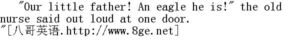 我们的老爷!真是苍鹰啊!"保姆从一道门口高声地说道。 The count danced well and knew that he did, but his partner could not dance at all, and did not care about dancing well. Her portly figure stood erect, with her mighty arms hanging by her side (she had handed her reticule to the countess). It was only her stern, but comely face that danced. What was expressed by the whole round person of the count, was expressed by Marya Dmitryevna in her more and more beaming countenance and puckered nose. While the count, with greater and greater expenditure of energy, enchanted the spectators by the unexpectedness of the nimble pirouettes and capers of his supple legs, Marya Dmitryevna with the slightest effort in the movement of her shoulders or curving of her arms, when they turned or marked the time with their feet, produced no less impression from the contrast, which everyone appreciated, with her portliness and her habitual severity of demeanour. The dance grew more and more animated. The vis-a-vis could not obtain one moment's attention, and did not attempt to do so. All attention was absorbed by the count and Marya Dmitryevna. Natasha pulled at the sleeve or gown of every one present, urging them to look at papa, though they never took their eyes off the dancers. In the pauses in the dance the count drew a deep breath, waved his hands and shouted to the musician to play faster. More and more quickly, more and more nimbly the count pirouetted, turning now on his toes and now on his heels, round Marya Dmitryevna. At last, twisting his lady round to her place, he executed the last steps, kicking his supple legs up behind him, and bowing his perspiring head and smiling face, with a round sweep of his right arm, amidst a thunder of applause and laughter, in which Natasha's laugh was loudest. Both partners stood still, breathing heavily, and mopping their faces with their batiste handkerchiefs. 伯爵跳得很棒, 而且心中有数, 不过他的女舞伴根本不擅长跳舞, 她也不想把舞跳好。她那硕大的身段笔直地站着, 把两只强而有力的手臂低垂下去(她把女式手提包转交给伯爵夫人), 只有她那副严肃、但却俊美的面孔在跳舞。伯爵的整个浑圆的身体是他外表上的特点, 而越来越显得愉快的眉开眼笑的脸庞和向上翘起的鼻孔却是玛丽亚?德米特里耶夫娜的外貌特征。如果认为, 伯爵跳得越来越痛快, 他那出乎意料的灵活转动和脚步从容的轻盈跳跃会使观众心神向往, 那末, 玛丽亚?德米特里耶夫娜在转身或踏拍子时, 肩膀一动或者手臂一卷曲, 就可轻而易举地产生同样良好的印象;虽然她的身躯过分地肥胖, 态度素来严厉, 每个观众仍然赞赏不已。舞跳得愈益热闹了。他们对面的别的舞伴一刻也没有引起观众的注意, 而且也不介意这件事。伯爵和玛丽亚?德米特里耶夫娜吸引着全体的注意力。在场的人们本来就目不转睛地望着跳舞的伴侣, 可是娜塔莎却拉拉这个人袖子, 扯扯那个人的连衣裙, 要大家都来看看她爸爸。跳舞暂停时, 伯爵吃力地喘气, 向乐师们挥手喊叫, 要他们快点奏乐。伯爵围绕着玛丽亚?德米特里耶夫娜疾速地旋转, 时而把脚尖踮起, 时而把脚跟跺地, 越来越矫捷, 越来越勇猛, 终于把舞伴领到她的坐位上, 他把一只脚向后磴起来, 低垂淌着热汗的头, 这样才跳完了最后一个舞步, 在洪亮的掌声和笑声中, 尤其是在娜塔莎的哈哈大笑声中, 他用右手挥动一下, 腾空画了一个圆圈。两个跳舞的人停步了, 吃力地喘气, 用麻纱手巾揩汗。 "That's how they used to dance in our day, ma chere, said the count. " 我们那个时代就是这样跳舞啊, machere, "①伯爵说道。 "Bravo, Daniel Cooper!" said Marya Dmitryevna, tucking up her sleeves and drawing a deep, prolonged breath. " 《丹尼拉?库波尔》真不错!"玛丽亚?德米特罗耶夫娜卷起袖子, 久久地、吃力地喘气, 说道。 ①法语: 老大娘。