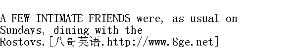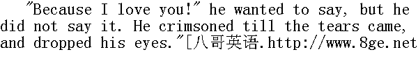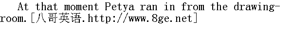 因为我爱你!"他想说, 但是没有说出来, 脸红得要流出眼泪, 他垂下了眼睛。 "Because it is better for me not to be so often with you.... Because ...no, simply I have business...."" 因为我最好还是少到这儿来......因为, ......不, 我不过是有事情...... "What for? No, do tell me," Natasha was beginning resolutely, and she suddenly stopped. Both in dismay and embarrassment looked at one another. He tried to laugh, but could not; his smile expressed suffering, and he kissed her hand and went out without a word." 因为什么, 不, 告诉我。"娜塔莎口气坚决, 可突然又沉默了。他们俩人都吃惊地、窘迫地望着对方。他试图笑一笑, 可是不能;他的微笑表达的是苦楚, 他默默地吻了吻她的手, 就走出去了。 Pierre made up his mind not to visit the Rostovs again. 皮埃尔暗自决定, 自己不再到罗斯托夫家去了。
