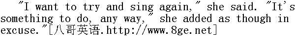 我又想试试唱歌, "她说, "总算有点事儿干。"仿佛抱歉似地又补充道。 "Quite right too!"" 好极了。" "How glad I am you have come! I'm so happy to-day," she said with the old eagerness that Pierre had not seen for so long. "You know, Nikolenka has got the St. George's Cross. I'm so proud of him."" 您来了, 我真高兴!我今天非常幸福!"她说, 带着皮埃尔在她身上久已不见的活泼神态。"您知道, Nicalas(尼古拉)得了圣乔治十字勋章了, 我真为他高兴。" "Of course, I sent you the announcement. Well, I won't interrupt you," he added, and would have gone on to the drawing-room." 当然知道, 命令是我送来的。好了, 我不打扰您了。"他补充道, 要往客厅走。 Natasha stopped him. 娜塔莎拦住他。