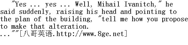 布里安小姐高兴地跳了起来。 "Ah, no," he shouted, frowning. "You run, Mihail Ivanitch!" Mihail Ivanitch got up and went to the study. But he had hardly left the room when the old prince, looking about him nervously, threw down his dinner napkin and went himself." 啊, 不用去啦, "他愁眉不展, 大声说道: "你去吧, 米哈伊尔·伊万内奇!"米哈伊尔·伊万内奇起身到书房去。他刚一出去, 老公爵就神色不安地东张西望, 扔下餐巾, 亲自去取信。 "They never can do anything, always make a muddle." 他们什么都不会干, 总是弄得乱七八糟。 As he went out, Princess Marya, Dessalle, Mademoiselle Bourienne, and even little Nikolushka, looked at one another without speaking. The old prince accompanied by Mihail Ivanitch came back with a hurried step, bringing the letter and a plan, which he laid beside him, and did not give to any one to read during dinner. 在他走后, 玛丽亚公爵小姐、德萨尔、布里安小姐, 甚至于尼古卢什卡都沉默地交换着目光。老公爵由米哈伊尔·伊万内奇陪着, 迈开急促的步伐回来了。他带着信和建房的计划、在吃饭的时候, 把它们信放在身边, 没让任何人看。 When they went into the drawing-room, he handed the letter to Princess Marya, and spreading out before him the plan of his new buildings, he fixed his eyes upon it, and told her to read the letter aloud.After reading the letter, Princess Marya looked inquiringly at her father. He was gazing at the plan, evidently engrossed in his own ideas. 老公爵转回客厅后, 他把信递给玛丽亚公爵小姐, 然后把新的建房计划摊开, 一面注视着建房计划, 一面命令她大声读信, 玛丽亚公爵小姐读完了信之后, 疑问地看了看他的父亲。他在看建房计划, 显然陷入了沉思。