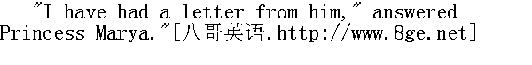 我接到他一封信。"玛丽亚公爵小姐回答道。 He looked at her with timid wonder. 他惊诧地胆怯地看着她。 "Where is he?"" 他在哪里?" "He is with the army, father, at Smolensk."" 他在军队里, mon pere①, 在斯摩棱斯克。" ①法语: 爸爸。