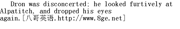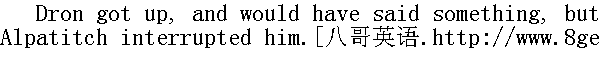 德龙站起身, 想要说点什么, 但是阿尔帕特奇阻住了他。 "What's this you've all got in your head? Eh? ... What are you thinking about? Eh?"" 您怎么会想到这里?咹?......您是怎么想的?咹?" "What am I to do with the people?" said Dron. "They're all in a ferment. I do tell them ..."" 我拿老百姓怎么办呢?"德龙说, "全都疯了, 我也是那么对他们说的呀......" "Oh, I dare say you do," said Alpatitch. "Are they drinking?" he asked briefly." 我也是那么说, "阿尔帕特奇说, "他们在喝酒?"他简短地问了一句。 "They're all in a ferment, Yakov Alpatitch; they have got hold of another barrel."" 全都发了狂。雅科夫·阿尔帕特奇;他们又弄来一桶。"