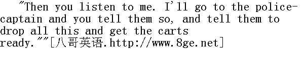 你给我听着。我到警察局长那里去, 你去管一下老百姓, 要他们不要干这种事, 把大车都准备好。" "Certainly," answered Dron." 我听见了。"德龙回答道。 Yakov Alpatitch did not insist further. He had much experience in managing the peasants, and knew that the chief means for securing obedience was not to show the slightest suspicion that they could do anything but obey. Having wrung from Dron a submissive "certainly," Yakov Alpatitch rested content with it, though he had more than doubts-he had a conviction-that the carts would not be provided without the intervention of the military authorities. 雅科夫·阿尔帕特奇不再坚持了。他在长时期对老百姓的统治中知道, 要使人们服从的一个主要手段就是不要向他们流露出对他们有可能会不服从的怀疑。从德龙的口中得到顺从的"是的--您老"这一句回话, 雅科夫·阿尔帕特奇感到满意, 虽然他不但怀疑, 而且差不多相信, 不借助军队的力量, 根本弄不到大车。 And as a fact when evening came, the carts had not been provided. There had been again a village meeting at the tavern, and at the meeting it had been resolved to drive the horses out into the forest and not to provide the conveyances. Without saying a word of all this to the princess, Alpatitch ordered his own baggage to be unloaded from the waggons that had come from Bleak Hills and the horses to be taken from them for the princess's carriage, while he rode off himself to the police authorities. 果真, 到了晚上, 大车并未来到。在村中的酒馆旁边又举行了一次集会, 在会上决定把马赶到森林中去, 并且不出大车。阿尔帕特奇没有把这件事告诉公爵小姐。他吩咐把从童山来的大车上的他的全部行李都卸下来, 把那些马套在公爵小姐的马车上, 之后, 他亲自去找地方官长去了。