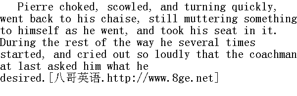 皮埃尔哼了几声, 皱着眉头, 赶快转身回到马车旁, 在他走着去坐车的时候, 他不断地自言自语, 在回家的途中有好几次浑身打战, 大声地喊叫, 以致车夫问他: "您有什么吩咐吗?" "Where are you driving?" Pierre shouted to the coachman as he drove to Lubyanka." 你往哪儿走?"皮埃尔对正把马车赶往鲁比扬卡去的车夫喊道。 "You told me to drive to the governor's," answered the coachman." 您吩咐见总司令的。" "Fool! dolt!" shouted Pierre, abusing his coachman, a thing he very rarely did. "I told you home; and make haste, blockhead! This very day I must set off," Pierre said to himself." 糊涂虫!畜生!"皮埃尔喊起来, 他很少这样骂他的车夫。"我说过要回家;快走, 糊涂虫!我今天就得离开。"他自言自语, 嘟哝着。 At the sight of the tortured Frenchman and the crowd round the Lobnoye Place, Pierre had so unhesitatingly decided that he could stay no longer in Moscow, and must that very day set off to join the army, that it seemed to him either that he had told the coachman so, or that the coachman ought to know it of himself. 看到那个受刑的法国人和围着宣谕台的人群以后, 皮埃尔最后决定, 再也不能留在莫斯科了, 他今天就要去参军, 他似乎觉得, 不是他已经这样吩咐过车夫, 就是车夫自己应当知道这一点。