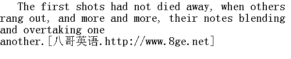 领到了, 陛下。" Napoleon nodded and walked away. 拿破仑点点头, 就走开了。 At half-past five Napoleon rode to the village of Shevardino. 五点半钟, 拿破仑骑着马到舍瓦尔金诺村。 It began to get light; the sky cleared, only a single storm cloud lay on the eastern horizon. The deserted camp-fires burned down in the pale light of morning. 天渐渐亮了, 万里晴空, 只有一片乌云悬挂在东方。被遗弃的篝火在晨光熹微中快燃尽了。 A solitary, deep cannon shot boomed out on the right, hovered in the air, and died away in the stillness. Several minutes passed. A second, and a third shot was heard, the air was full of vibration; a fourth and a fifth boomed out majestically, closely on the right. 右边响起一声沉重的炮击声, 炮弹划破寂静, 然后消失了。过了几分钟。响起第二、第三声炮击, 震荡着空气;右边不远处庄严地响起第四、第五声炮击。