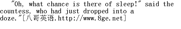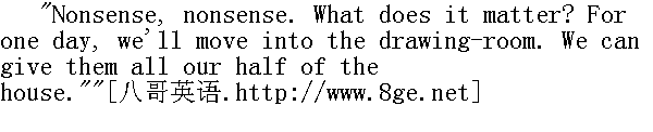 没事, 没事, 反正都一样!我们搬到客厅去住一天。腾一半给他们都行。" "What an idea! what next? The lodge, may be, the men's room, and old nurse's room; and you must ask leave for that."" 呶, 小姐, 瞧您想的!就是住厢房, 下房和保姆的房间, 也得问一声呀。" "Well, I will ask."" 呶, 我去问。" Natasha ran indoors, and went on tiptoe to the half-open door of the divan-room, where there was a strong smell of vinegar and Hoffmann's drops. 娜塔莎跑回家, 踮脚走进半掩着的起居室的房门, 里面散发出醋味和霍夫曼药水味。 "Are you asleep, mamma?"" 您睡着了吗?妈妈。"