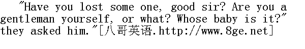 你和谁走散了, 好人?""您自己是名门望族, 对吧?谁的娃娃?"众人问他。 Pierre answered that the baby belonged to a woman in a black mantle, who had been sitting at this spot with her children; and asked whether any one knew her, and where she had gone. 皮埃尔回答说, 孩子是一个身穿黑色斗篷式长衫的女人的, 她刚才带着儿女就坐在这里, 他又问有没有谁认识她, 她走到那里去了。 "Why, it must be the Anferovs," said an old deacon addressing a pock-marked peasant woman. "Lord, have mercy on us! Lord, have mercy on us!" he added, in his professional bass." 这一定是安菲罗夫家的女孩, "一个老年的教堂执事对一个麻脸的姆妈说。"上帝保佑, 上帝保佑, "他又用惯常说话用的低音补了一句。 "The Anferovs," said the woman. "Why, the Anferovs have been gone since early this morning. It will either be Marya Nikolaevna's or Ivanova's."" 安菲罗夫一家在哪里?"姆妈说。"安菲罗夫家一早就离开了。而这娃娃要末是玛丽亚·尼古拉耶夫娜的, 要末是伊万诺夫家的。" "He says a woman, and Marya Nikolaevna's a lady," said a house-serf." 他说--女人, 可玛丽亚·尼古拉耶夫娜是太太呀。"一个家仆模样的人说。