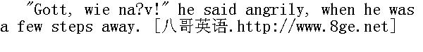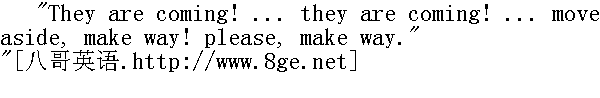 他们来了!......他们来了!......闪到一边去吧, 让路!请让路!" The generals advanced with an air of wishing to avoid burdensome honours. The face of the comic man, Zherkov, suddenly wore a stupid smile of glee, which he seemed unable to suppress. 两个将军走过去, 他们都摆出一副想回避麻烦礼节的样子。诙谐的热尔科夫脸上忽然流露出似乎忍耐不住的欢快的蠢笑。 "Your Excellency," he said in German, moving forward and addressing the Austrian general, "I have the honour to congratulate you." He bowed, and awkwardly, as children do at dancing-lessons, he began scraping first with one leg and then with the other. The member of the Hofkriegsrath looked severely at him, but seeing the seriousness of his stupid smile, he could not refuse him a moment's attention. He screwed up his eyes and showed that he was listening. " 大人, "他向前迈出几步, 把脸转向奥国将军用德国话说道, "向您道贺, 我深感荣幸。"他低下头来, 就像那学跳舞的儿童一样, 呆笨地时而伸出左脚, 时而伸出右脚, 开始并足致礼。奥国军事参议院参议员将军严肃地瞟了他一眼, 可是发现他一本正经地蠢笑, 不能不注意一会儿。将军眯缝起眼睛, 表示正在听他说话。 "I have the honour to congratulate you. General Mack has arrived, quite well, only slightly wounded here," he added, pointing with a beaming smile to his head. " 马克将军来到了, 他安然无恙, 只是这个地方碰伤了, 向他道贺, 我深感荣幸。"他指了指自己的头部, 微露笑容地补充了一句。 The general frowned, turned away and went on. 将军蹙起了额头, 转过身子向前走去了。