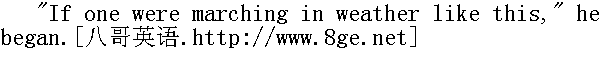 "Sil'onmarchaitparuntempscommecelui-la..." ②他刚要说下去。 ②法语: 如果在这样的天气行军嘛...... Pierre questioned him what he had heard of the departure of the French, and the corporal told him that almost all the troops were setting out, and that to-day instructions were expected in regard to the prisoners. In the shed in which Pierre was, one of the Russian soldiers, Sokolov, was dangerously ill, and Pierre told the corporal that something ought to be done about this soldier. The corporal said that Pierre might set his mind at rest, that they had both travelling and stationary hospitals for such cases, that instructions would be given in regard to the sick, and that in fact every possible contingency was provided for by the authorities. 皮埃尔问他听到有关出发的消息没有, 那个班长说, 几乎所有的部队都已经出发了, 今天应当得到处理俘虏的命令。在皮埃尔住的那所棚子里有一个叫索科洛夫的士兵, 患了重病, 生命垂危, 皮埃尔对那个班长说, 应当对他有适当的安排, 班长要皮埃尔尽管放心, 因为他们有一所野战医院和一所常设的医院, 都会照应病员的, 总之, 可能发生的一切事情, 长官们全都想到了。 "And then, M. Kiril, you have only to say a word to the captain, you know. Oh, he is a man who never forgets anything. Speak to the captain when he makes his round; he will do anything for you."