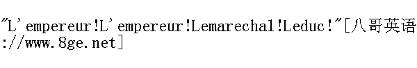 "Avosplaces!" ①突然间喊出一声口令。 ①法语: 各就各位 There was a cheerful stir among the prisoners and convoy soldiers, and an air of expecting something festive and solemn. Shouted commands could be heard on all sides, and a party of well-dressed cavalry soldiers on good horses came trotting up from the left, making a circuit round the prisoners. Every face wore the look of nervousness commonly seen at the approach of men in authority. The prisoners huddled together and were shoved out of the way. The convoy soldiers formed in ranks. 在俘虏和押送队中发生了一阵骚动, 似乎期待着一种快乐而庄严的事情。四面八方都传来了口令声, 从俘虏队的左边来了一队骑着骏马, 军容整肃的骑兵。所有的人都紧张起来, 这是每当最高当局的大人物驾临时人们常有的表情。俘虏们被赶到一边, 挤成一团。押送队的士兵们集合列队。 "The Emperor! The Emperor! The marshal! The duke!..." and the sleek cavalry soldiers had hardly ridden by when a carriage rattled up drawn by grey horses. Pierre had a passing glimpse of the serene, handsome, fat, white face of a man in a three-cornered hat. It was one of the marshals. The marshal's eye was caught by Pierre's big, striking figure; and in the expression with which he frowned and looked away Pierre fancied he saw pity and the desire to conceal it.