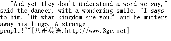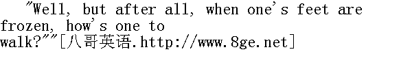 大伙儿劈开木柴, 往火上加, 用嘴吹, 用大衣的下摆煽, 火苗丝丝作响, 噼噼啪啪地燃烧起来。士兵们挪近火堆, 抽起烟来。那个抱木柴来的年轻英俊的士兵, 两手叉腰, 就地快速和有节奏的跺着冻僵了的脚。 "Ah, mother dear, the dew is cold, but yet it is fine, and a musketeer!" ... he began singing, with a sort of hiccup at each syllable of the song." 哎呀, 我的妈呀, 夜露多冷, 好在我是一个火枪兵......"他悠然低吟, 好像每一个音节都要打个嗝儿。 "Hey, his soles are flying off!" cried the red-haired man, noticing that the dancer's soles were loose. "He's a rare devil for dancing!"" 喂, 鞋底要飞了!"那个红脸人发现跳舞的人的靴底掌搭拉下来, 高声叫道。"好一个舞蹈家。" The dancer stopped, tore off the loose leather, and flung it in the fire. 跳舞的人停住脚, 扯下搭拉下来的皮子, 扔进了火堆。 "You're right there, brother," said he, and sitting down he took out of his knapsack a strip of French blue cloth, and began binding it round his foot. "It's the steam that warps them," he added, stretching his feet out to the fire." 好啦, 老兄, "他说;他坐下来, 从挎包里掏出一块灰色法兰绒, 用它包住脚。"都冻木了。"他补了一句, 把脚伸向火堆。