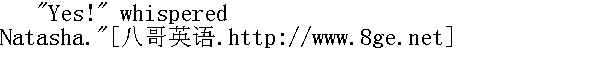 爱。"娜塔莎细声说。 "What are you crying for, then? I am very glad for you," said Princess Marya, moved by those tears to complete forgiveness of Natasha's joy." 那你哭什么?我为你高兴。"玛丽亚公爵小姐说, 由于她流了泪, 她已经原谅了娜塔莎的快乐了。 "It will not be soon ... some day. Only think how happy it will be when I am his wife and you marry Nikolay!"" 这不会很快了, 总有这么一天。你想一想, 我做了他的妻子, 你嫁给尼古拉, 那该是多幸福啊!" "Natasha, I have begged you not to speak of that. Let us talk of you."" 娜塔莎, 我不是求你别谈这个吗?咱们只谈你的事。" Both were silent. 她们沉默了一会儿。